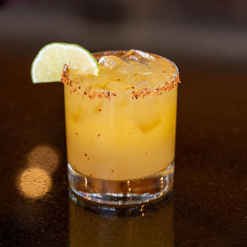 Mango Shotta Tequila, House Margarita mix & lime juice Tajin Rim